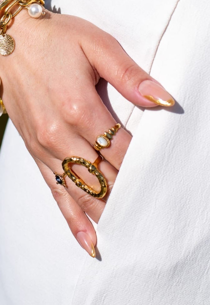 Elle est sublimée par une véritable pierre naturelle ovale, créant un bijou au design précieux et moderne, conçu pour sublimer votre doigt avec élégance, que ce soit porté seul pour une allure sobre ou a associé.