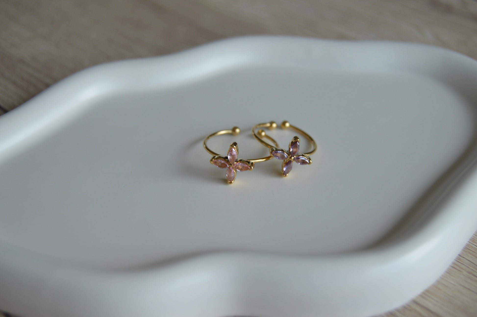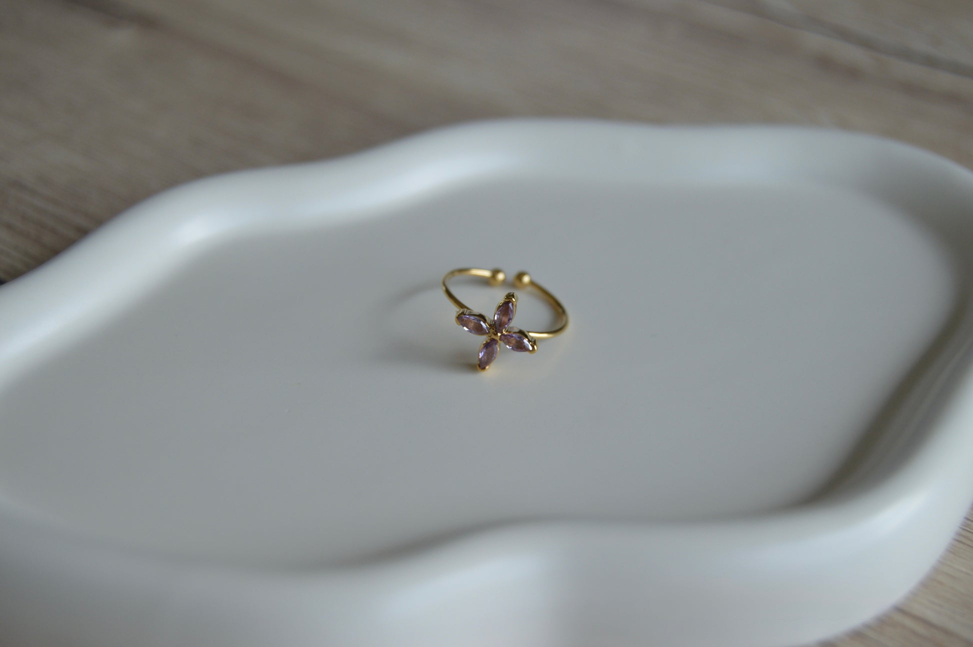 Confectionnée en acier inoxydable ajustable, elle est sublimée par une pierre naturelle d’Améthyste ou de Quartz rose en forme d'étoile aux nuances profondes. Les lignes délicates de la bague captent subtilement la lumière, révélant toute l’élégance et la féminité de ce bijou raffiné.